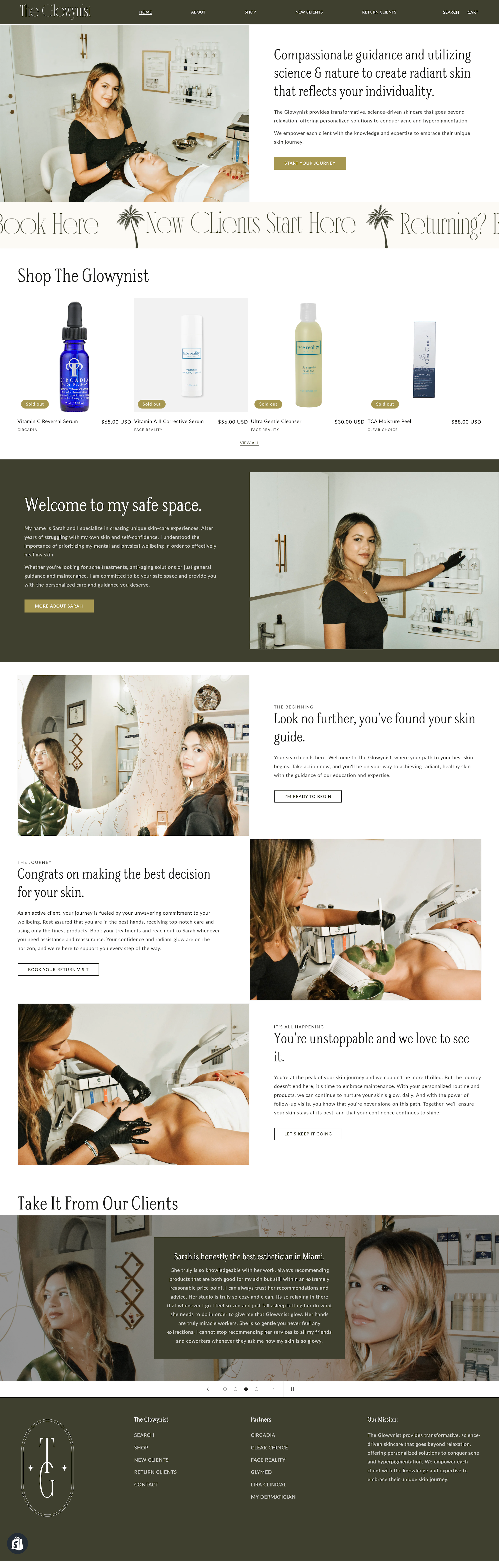 After I filled out the forms she requested and gave her a little insight into my likes and dislikes, she just took it from there and then delivered my website (COMPLETE and a week early). She's also an esthetician so she understands all of the services we offer and brand rules.